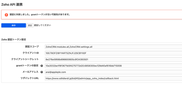 - a-blog cmsの拡張アプリ zoho に認証トークンを登録