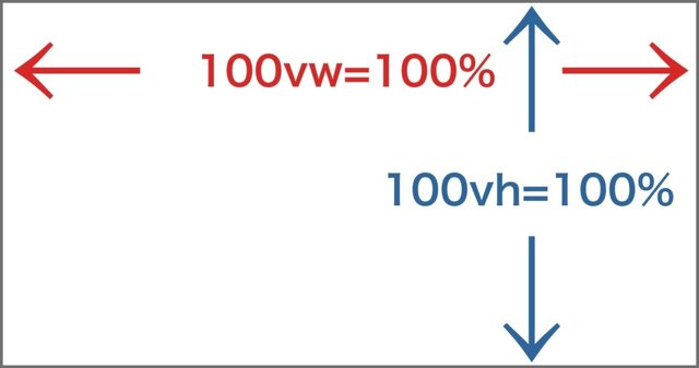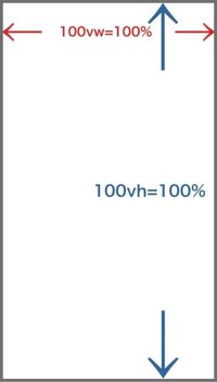 画面サイズに対する相対値でviewport height/viewport widthの略になります。画面サイズが100%とという基準となり100vh,100vwが100%となります。