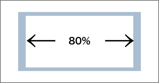 親要素に対する相対値になります。他の単位に比べて直感的でわかりやすいと思います。白枠のwidthに80%を指定すると親要素である枠に対して80%の枠が指定されます。
