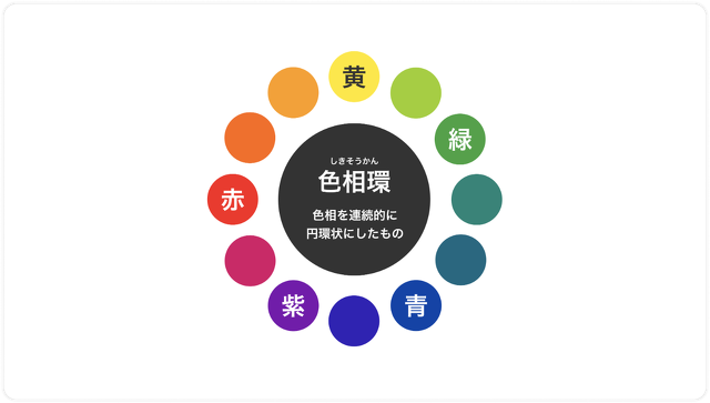 色相環は、色相(Hue)を円形に配置した図形で、色相を直感的に理解するためのツールとして広く用いられています。
