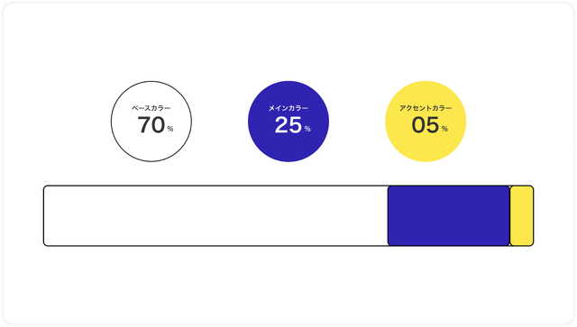 70%はベースカラー、25%はメインカラー、5%はアクセントカラーの比率で配色すると、美しい配色になると言われています。