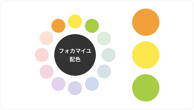 統一感を保たせながら、少しだけ色を増やしたい時にはフォカマイユ配色が役立ちます。