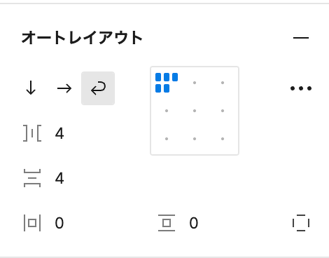 今回のアップデートで縦横の指定ボタンの隣に折り返しボタンが追加されました。この機能が追加されたおかげで1つのオートレイアウトで完結することができます!