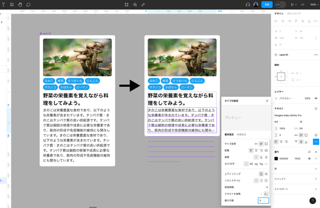 最大行数をFigmaで指定できるようになったことにより、実装者が視覚的に行数の指定を確認できるようになりました。またCSSだけでなく、テキストもコピーできるのでとても便利だと思います。
