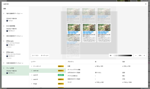 しかし、折り返し(Wrap)が追加されたことによりアートボートサイズが変化してもそれに適応しながら折り返してくれるようになりました。複数作っていたオートレイアウトも一つ用意するだけで綺麗に並べることができるようになりました。