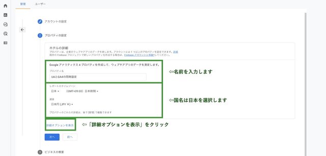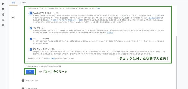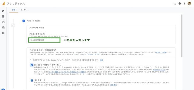 (これから設定していくアカウント名やプロパティ名などは後から変更することができます。)