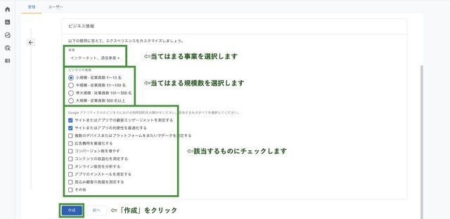 該当するものにチェックを入れたら、「作成」をクリックします。