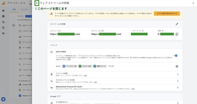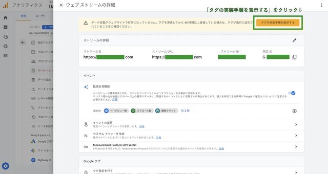 管理画面が開くと、GA4の「ウェブストリームの詳細」というページに遷移します。