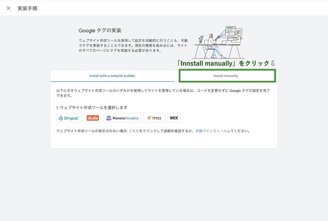 実装手順のページに遷移するので「Innstall manually」をクリックします。